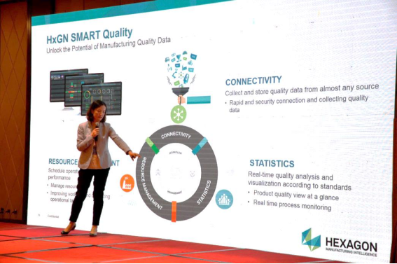 海克斯康制造智能全球产品市场经理廖鲁女士从“智能制造与企业卓越经营”的角度,讲述了在德国工业4.0中如何在产品全生命周期中通过使用最先进的智能化生产方案以及多个阶段和进程的数字化管理,使得质量信息贯穿产品设计、制造过程的每一个环节,为精密工程测量与仪器领域的发展提供了新视角。