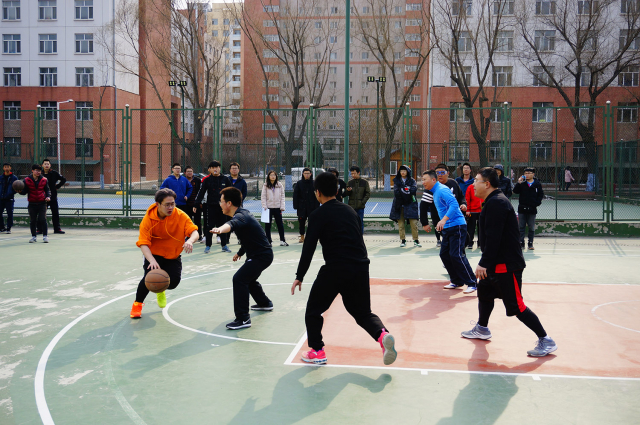 比赛共吸引了十支男子队伍、三支女子队伍报名,从大一年级的新人,到多篇SCI在手的硕博研究生以及部分教师皆是参与其中。尽管天气寒冷,但是队员们热情似火,在场上,他们顽强拼搏,不断地用精湛的球技和巧妙的配合引来场下阵阵喝彩。十支男子队伍赛前抽签分成两组,组内进行单循环,经过激烈的角逐,A组“学长队”和“谢广坤队”小组出线,B组“养生篮球队”和“蔡徐坤队”小组出线,四支队伍进入半决赛。
