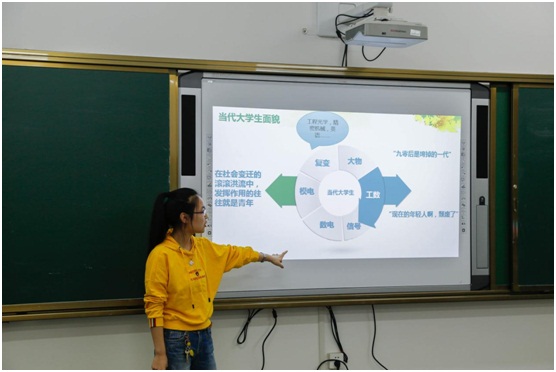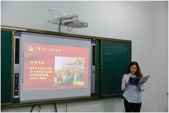 在主持人曹明达同学的介绍之下,参赛选手依次上台进行微团课展示。16名参赛选手的主题内容各不相同,有的同学带领大家追忆过去,纪念五四运动;有的同学娓娓讲述,展现榜样力量;还有的同学刨析当代老员工精神世界,为大家指点方向……同学们激昂澎湃的讲解,深刻独到的见解,形式多样的表现形式,吸引了评委老师和现场观众的阵阵掌声。