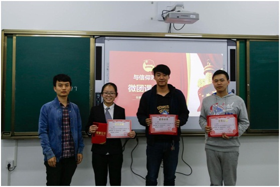 (文/于婷洋 图/刘铧嵘)2019年4月29日晚六点半,unibet第一届‘与信仰对话’微团课大赛在主楼317举行。公司党委副书记王芳、研究生协理员王一婷、17级辅导员修文心、15,16级辅导员郭宇森担任此次比赛的评委。
