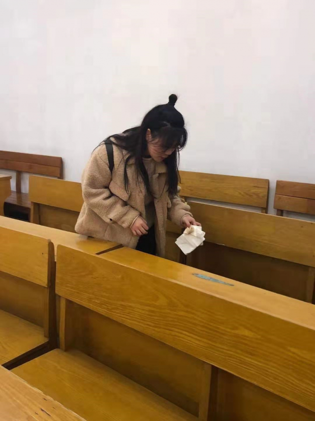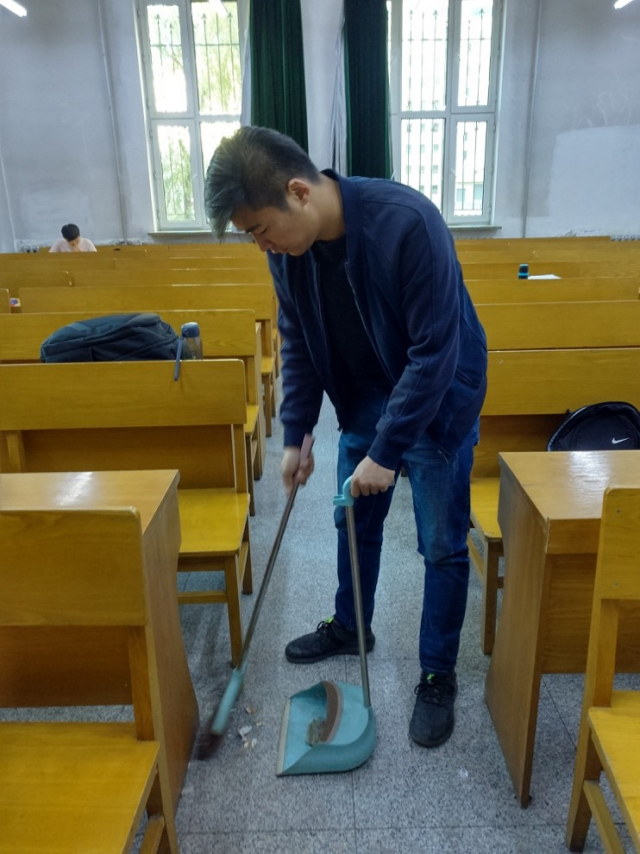 帮助保洁阿姨清扫教室,为同学们上课和自习提供干净、整洁、舒适的学习环境,是本次预备党员先锋实践活动重要一环。旨在增强党员同学政治信仰、增强“四个意识”,坚定“四个自信”,做到“两个维护,”不负总书记的嘱托,听党话,跟党走。