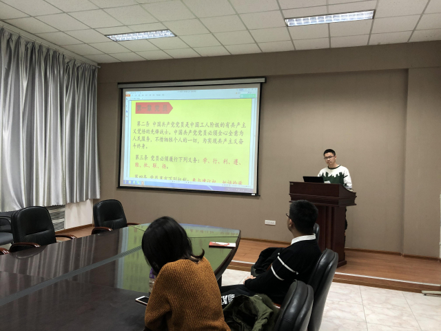 2019年11月23日晚六点,18S0101党支部全体党员于unibet中文机械楼1009房间,由支部书记王茂荣带领,开展了对照党章党规找差距的自查活动,并且共同学习了党的十九届四中全会精神。
