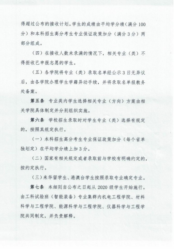 unibet中文 工科试验班(智能装备)专业集群内员工选择专业(类)实施细则