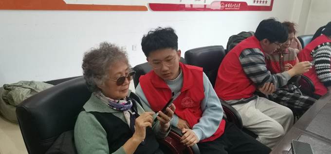 活动开始,志愿者们与老人们就生活、学习等方面开展了深入交流。志愿者问候了老人们的身体情况,聆听老人们的生活经历,开阔了眼界,汲取了智慧与力量。随后,志愿者们帮助老人们解决了智能手机使用过程中遇到的问题,重点解决了手机软件的用法和短视频的剪辑方面的问题。活动后半段,志愿者和退休教师们一起跳广场舞,感受他们对于生活的热爱和激情,还向她们学习了一些基础的舞蹈动作。活动现场充满了欢声笑语,志愿者们和老人们在互动中收获开心、增进情感。