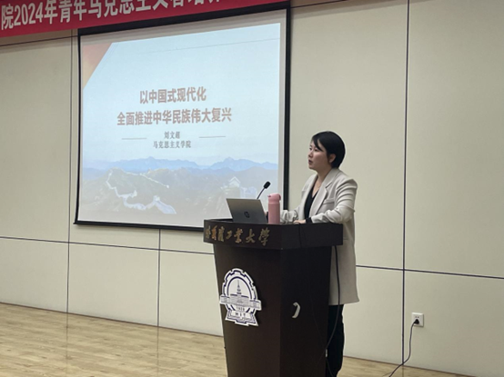 随后进行培训环节,本次团校第一讲邀请到马克思主义公司刘文超老师为学员带来以《以中国式现代化全面推进中华民族伟大复兴》为题的专场培训。培训开始后,刘老师分别从“什么是中国式现代化”“为什么要走中国式现代化”“如何走好中国式现代化”三个方面展开论述。通过刘老师的精彩讲解,使学员们更加深入了解了中国式现代化的发展逻辑、核心要义和前进方向,也更加明确了自身所肩负的担当与使命。培训最后,刘老师强调,作为新时代优秀青年,我们要深刻理解继承中华优秀文化的使命感和责任感,始终坚持文化自信,勇挑重担,锐意进取,在守正创新中将中华优秀传统文化发扬光大。