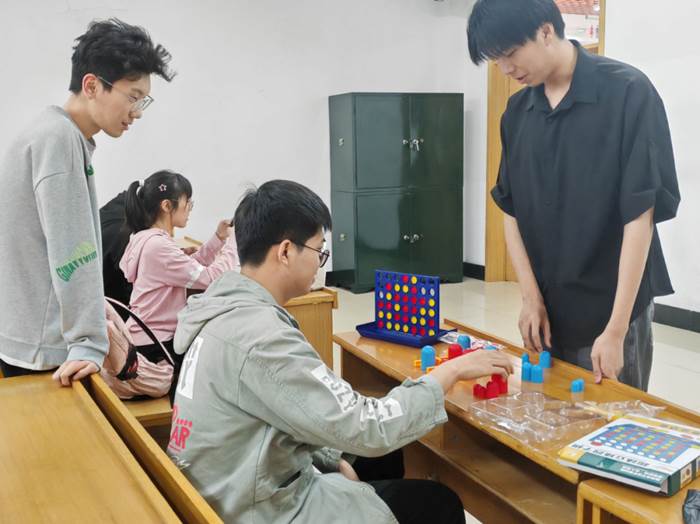 本次活动提供了趣味井字棋、趣味立体四子棋等新型趣味棋类运动,采用守擂积分式比赛赛制。同学们对不同以往的趣味棋类游戏表现出极大兴趣,纷纷专注棋局并出谋划策。比赛当中,同学们不以输赢为重,而是享受下棋中的乐趣,同时也收获了真挚的同学情谊和纯真的快乐。活动在同学们的欢声笑语中圆满结束。
