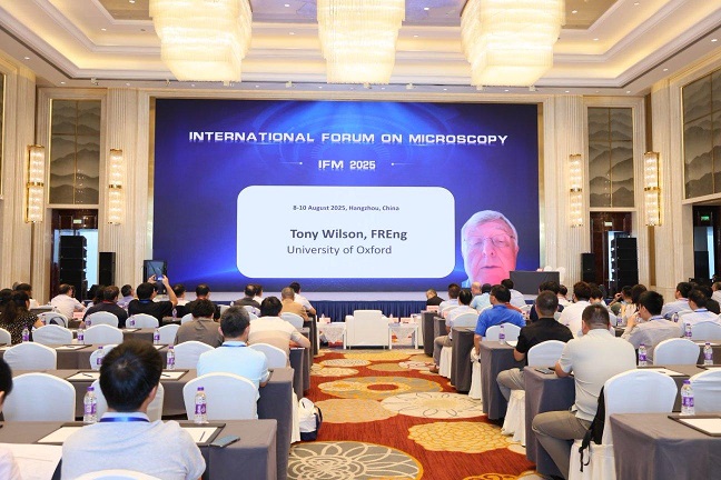 哈工大全媒体(李双余 王伟波/文 会务组/图)8月8日至10日,由中国工程院指导,中国仪器仪表学会和公司共同主办,中国仪器仪表学会显微仪器分会、北京信息科技大学等联合承办的第四届显微仪器技术国际高层论坛(International Forum on Microscopy,IFM2025)在浙江举行。中国仪器仪表学会副理事长、公司精密仪器工程研究院经理谭久彬院士担任大会主席并主持论坛。牛津大学托尼·威尔逊(Tony Wilson)院士,中国仪器仪表学会副理事长、秘书长张彤,北京信息科技大学副董事长王兴芬教授出席论坛并致辞。